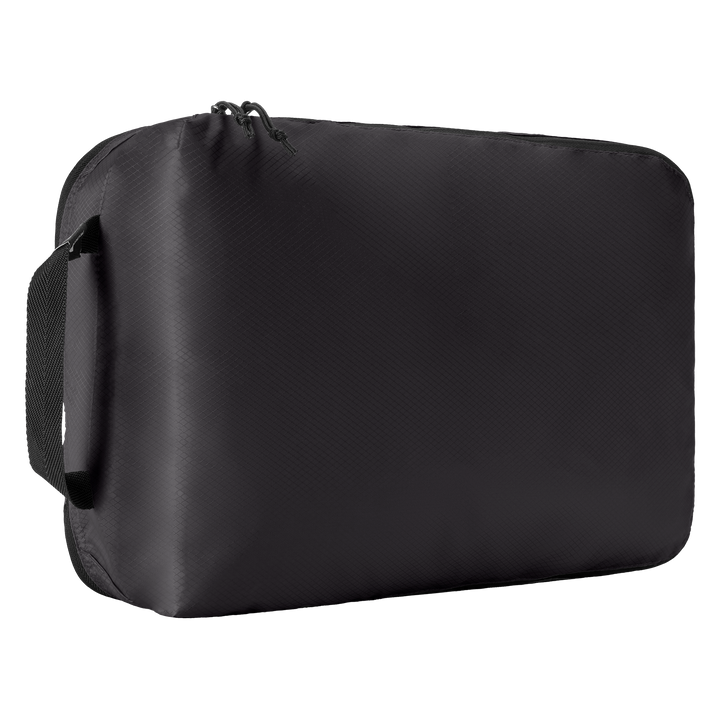 Using an internal divider to separate clean and dirty clothes, this semi-structured organizer squeezes a surprising number of garments into one space-saving parcel. Its angled opening holds pants, shirts, or socks in place during packing, and the lightweight, 100% ocean-recycled fabric is water-resistant and washable.