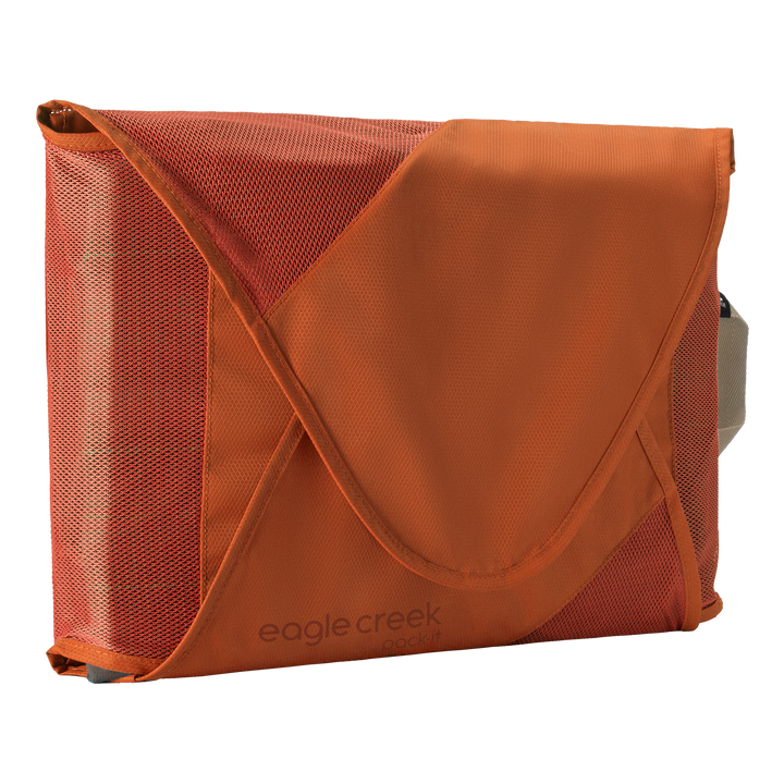 No need for ironing: This structured garment organizer ensures that clothing arrives unwrinkled. Its lightweight folding board facilitates tidy packing, and the hook-and-loop closure compresses pants, collared shirts, and long-sleeved tops. See-through mesh, made of 100% recycled polyester, reveals contents at a glance, and the folder fits within most carry-on bags.