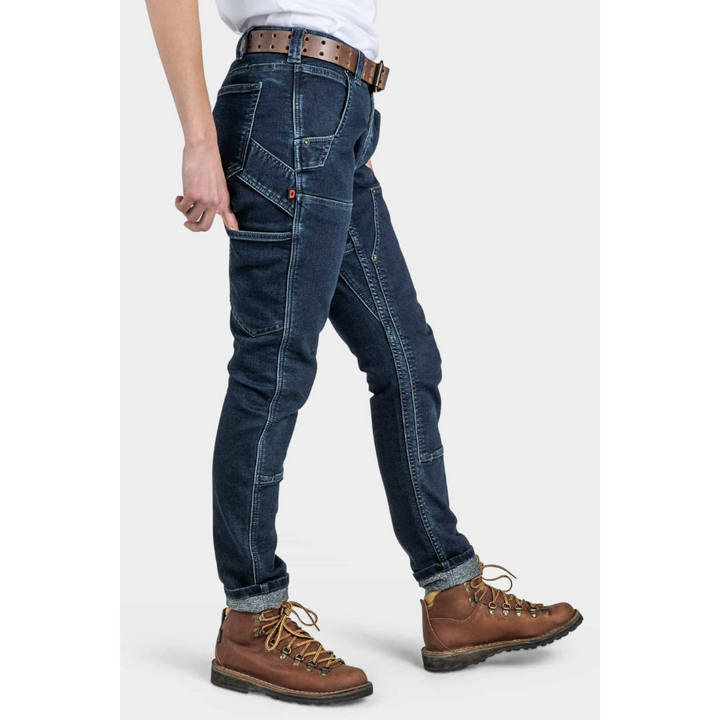 Warm jeans that look good. It`s a motherfleecing miracle. What if your favorite slim-fit jeans also kept you warm? Maven X has gone thermal, and these fleeced jeans are the warm work pants for women. Here`s the thing: women want insulated jeans, but without bulk. Or as we say here at Dovetail, liners are for panties, not pants! How do we retain the flattering fit of our Maven X pant and combat Numb Bum Syndrome? We use an all-in-one hybrid denim, not denim with a fleece lining glued into it. We`ll repeat that, because we know it`s a mindbender. One fabric, two faces. Which means tough denim on the outside, but fleeced and snuggly on the skin. Eat your hartt out, Carhartt. You can`t touch this!